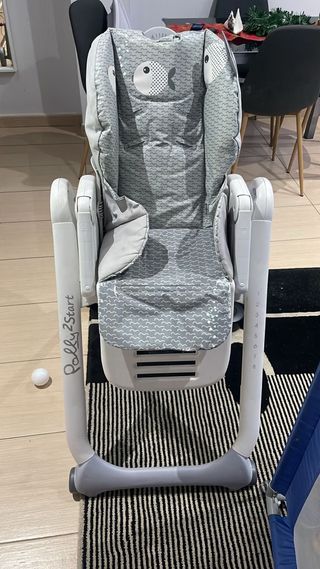 Preciosa trona de la marca peg perigo, en color rosa y blanco. Está en muy buen estado y es perfecta para alimentar a tu bebé con comodidad. tiene una lanchita de un amjientador qu cayo sin querer. se puede lavar n la lavadora - Plegable para facilitar su almacenamiento. - Estructura resistente y ligera. - Tapicería suave y fácil de limpiar.