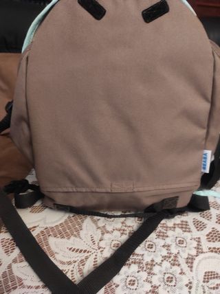 trona/mochila de viaje con compartimentos para poder guardar alimentos, pañales... con bolsillos termicos