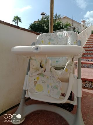 Silla de trona de Jane, en perfecto estado y muy cuidada. se reclina con la palanca que tiene en la parte trasera del asiento. Falta la base donde colocarla para tenerla en alto.