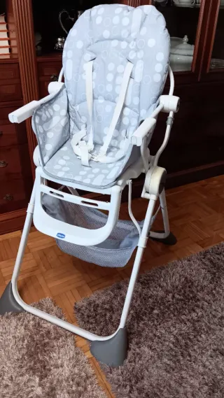 Trona Chicco Polly 2 Start en muy buen estado. Ideal para los más pequeños. RECOGIDA EN VIGO. - Diseño divertido y colorido. - Bandeja extraíble. - Asiento acolchado y lavable. - Altura regulable.