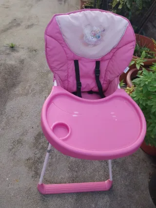 Trona de bebé en color rosa, ideal para las comidas. - Asiento acolchado. - Bandeja extraíble. - Arnés de seguridad.