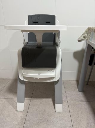 Trona en muy buen estado. Comodisima hasta los 4 años. Reclinable y Regulable a distintas alturas, se pliega y ocupa poco espacio. Bandeja extraible para lavarla. Tejido imitacion piel con muy buena lipieza. Se desenfunda completa.