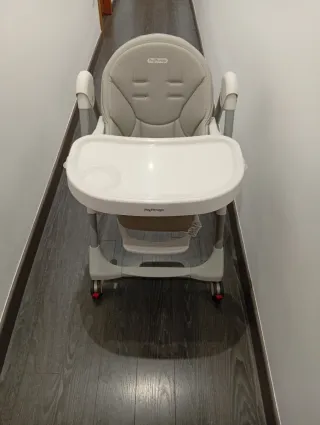 Trona Chicco Polly 2 Start. Tiene poco desgaste porque ha estado todo el tiempo en casa de los abuelos. Permite muchas posiciones y ajuste de altura. Se pliega y queda muy bien recogida. La entrego limpia ;-)