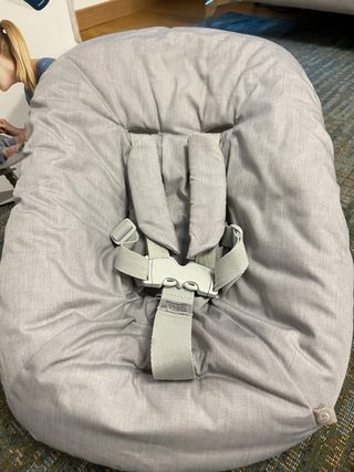Accesorio para trona Stokke Tripp Trapp, diseñado para recién nacidos. Con funda acolchada original de color gris y cuenta con un arnés de seguridad. - Tejido suave y acolchado. - Arnés de 5 puntos. - Compatible con tronas Tripp Trapp.