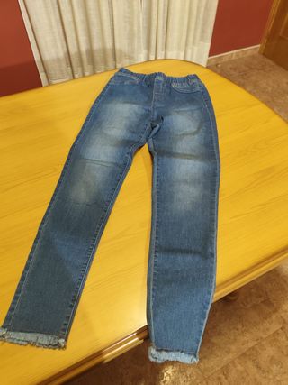 Pantalón vaquero de la marca Tex para niña. Talla 13-14 años. Diseño moderno con bajos deshilachados. Cintura elástica para mayor comodidad.