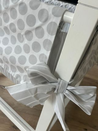 Hamaca ergonómica BabyBjörn en color gris en su caja original. Mi hijo mayor decidió hacer un dibujo ✍️ con permanente negro en la hamaca por eso tiene esa mancha que he intentado quitar con todos los trucos que me dice Chat Gpt pero.... no he logrado que se fuera del todo!! pero la hamaca funciona perfectamente 😉 - Tejido suave y transpirable. - Estructura metálica. - Base antideslizante.