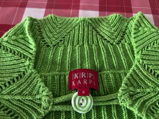 Chaqueta de punto verde para niña, talla 6. - Diseño con manga larga. - Cierre con botón. - Detalle de puntadas caladas en los puños y el cuello.
