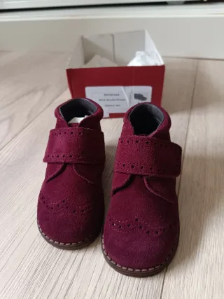 Preciosas botitas de ante en color burdeos, talla 21. ¡A estrenar! - Material exterior: ante. - Cierre de velcro. - Detalle de picado decorativo.