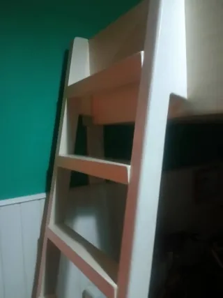 Vendo cama sobreelevada con somier y colchón de 1,35cm ,1,60cm de alto debajo y 1,80cm de altura total. Hecha en madera maciza de 7cm de espesor con escalera también a la medida.