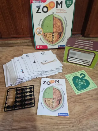Juego educativo Clementoni ZOOM para descubrir el interior de objetos y animales. - Incluye tablero, cartas y piezas. - Fomenta el aprendizaje y la curiosidad. - Ideal para niños a partir de 6 años.