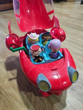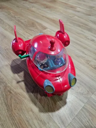 Nave espacial de juguete de Little Einsteins, lista para la aventura. - Incluye 4 figuras de personajes. - Diseño rojo brillante. - Ventanas transparentes en la parte superior. Mattel 2006