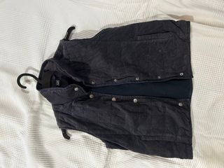 Chaleco acolchado con un diseño moderno. - Estampado denim. - Cierre de cremallera. - Bolsillos laterales con cremallera. Talla 14-16 suave y calentito en interior