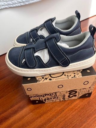 Zapatos infantiles de la marca Feroz Onil en talla 30. Son de color gris y tienen un diseño moderno. - Cierre de velcro. - Materiales transpirables. - Suela flexible.