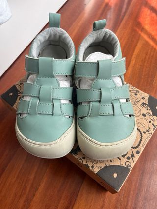 Zapato tipo sandalia de la marca Irta en color verde menta. - Talla 30. - Cierre de velcro. - Diseño abierto con tiras.
