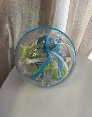 Juego de laberinto en 3D. - Esfera transparente. - Laberinto interior con obstáculos. - Diseño multicolor con azul y verde. -Sin caja
