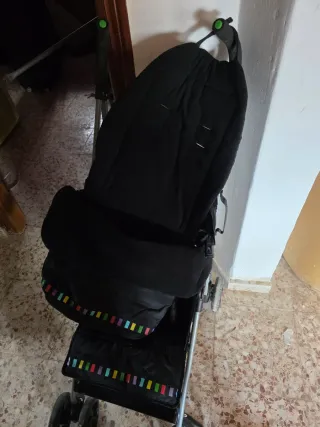 Silla de paseo negra con detalles de colores