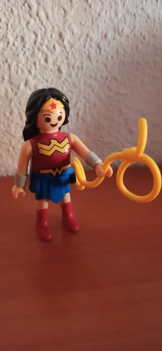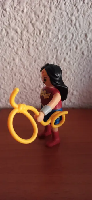 Figura de Playmobil de Wonder Woman con su característico lazo. Coleccion Kinder Sorpresa - Figura de Wonder Woman. - Incluye lazo amarillo. Precio 8€ Entrega en Alcorcon, Madrid o Mostoles