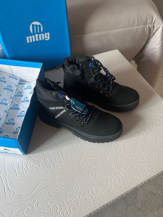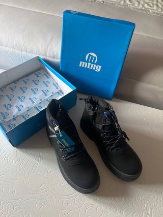 Botas de invierno para niño de la marca MTNG en color negro. Perfectas para mantener los pies calientes y protegidos.talla 36 Caja en perfecto estado, ideal para regalo - Cierre de cremallera. - Cordones decorativos. - Suela de goma.