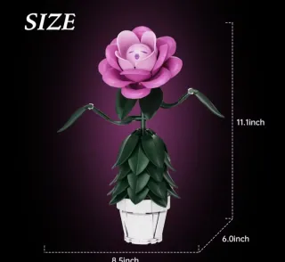 Set de construcción de bloques para crear una flor inspirada en el pais de las maravillas Flor. - Diseño detallado con pétalos rosas y hojas verdes. - Incluye maceta blanca. - 220 piezas.