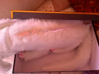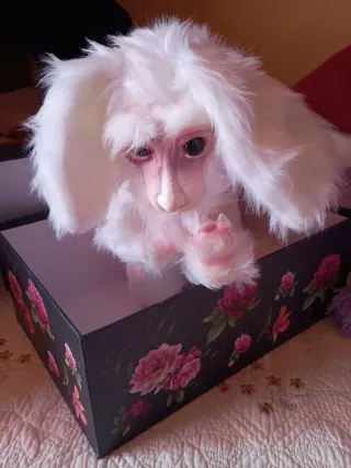 Peluche del personaje Fujur de la película La Historia Interminable. - Diseño blanco y esponjoso. - Orejas largas y caídas. - Detalle de hocico y patas en tono rosado.