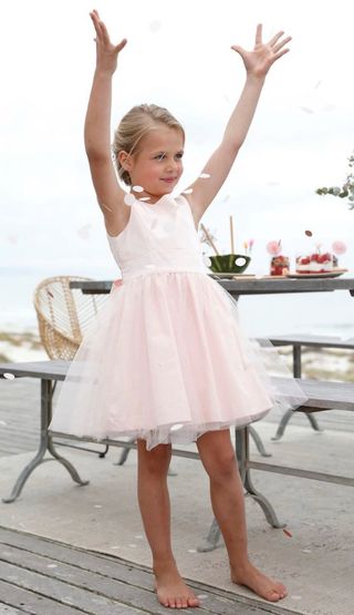 Vestido de fiesta para niña de la marca Vertbaudet, talla 128 (equivalente a 8 años). Usado una vez. - Color rosa pálido. - Tejido de tul. - Ideal para celebraciones.