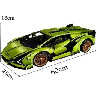 Réplica detallada del icónico Lamborghini Sián FKP 37 construida con piezas de construcción - Color verde vibrante. - Diseño aerodinámico característico. - Llantas doradas. - no incluye su caja