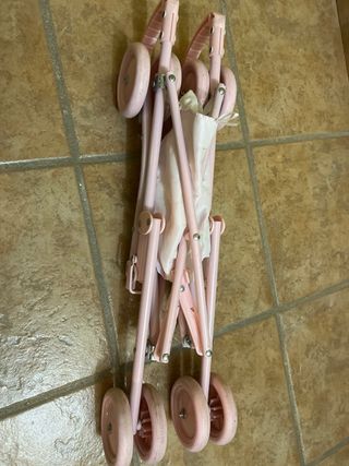 Carrito de muñecas en buen estado, ideal para jugar. - Color rosa y granate. - Capazo con capota. - Ruedas resistentes.