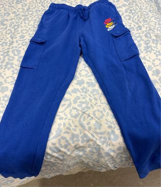 Pantalón de chándal Nike en color azul, con un diseño moderno y práctico. - Bolsillos cargo laterales. - Cintura con cordón ajustable. - Logo de Nike en la parte superior.