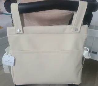 Bolsa panera para carro de polipiel color beige, crema para carro de bebé. Se vende con su embalaje etiqueta. Totalmente nuevo y sin uso. - Cierre con corchetes. - Fácil de limpiar. - Bolsillo exterior. - 2 bolsillos interiores. - Lazos decorativos laterales en el bolso.