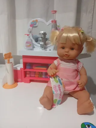 Set de juego Nenuco Manitas Limpias. - Incluye tocador con espejo. - Accesorios de higiene. - Muñeca Nenuco.