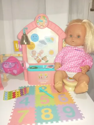 Set de juego Nenuco Guardería. - Incluye muñeca Nenuco. - Incluye accesorios como pizarra, campana y alfombra de números. - La pizarra tiene figuras de clima y caras.