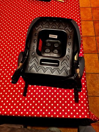 Asiento/patinete para carrito de bebé que permite que un niño mayor viaje de pie y sentado. - Plataforma negra con textura antideslizante. - Asiento negro abatible acolchado para máxima comodidad. - Dos brazos de sujeción negros con correas ajustables super seguras. - Ruedas para facilidar el movimiento. Estado como nuevo, solo un uso, de puede ver qué las ruedas no están ni sucias.