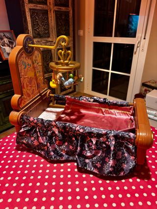 Cuna de juguete de la colección Disney Animator. - Diseño inspirado en personajes Disney. - Móvil con figuras colgantes. - Incluye ropa de cama. - Estructura de madera.