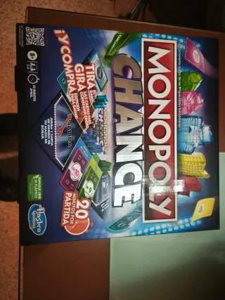 Juego de mesa Monopoly Chance, una versión emocionante del clásico juego de propiedades inmobiliarias. Ideal para partidas rápidas. - Juego para 2-4 jugadores. - Edad recomendada: 8+ años. - Duración aproximada: 20 minutos por partida. - Empaque libre de plástico.