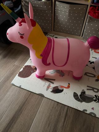 Divertido unicornio saltarín de color rosa, perfecto para que los más pequeños jueguen y se diviertan. - Diseño de unicornio. - Color rosa. - Material resistente.