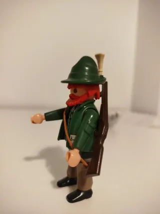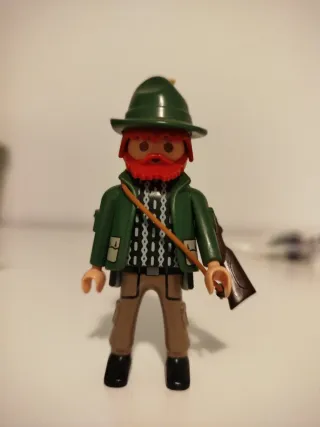 Figura de Playmobil de un guardabosques. - Incluye escopeta. - Gorro verde. - Barba roja.