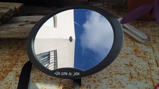 Espejo para coche de la marca Kide zone.by Jane. Permite ver al bebé mientras conduces.Tiene unos arañazos. - Diseño ovalado. - Marco negro. - Correa de sujeción.