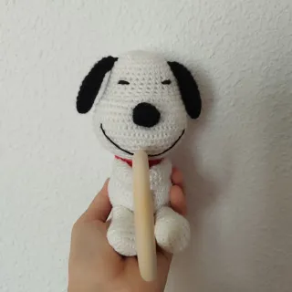 Amigurumi de Snoopy, personaje de Peanuts, hecho completamente a mano con ganchillo. - Diseño de Snoopy. - Hecho a mano. - Incluye un aro de madera.