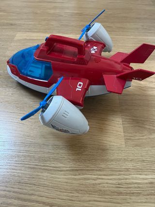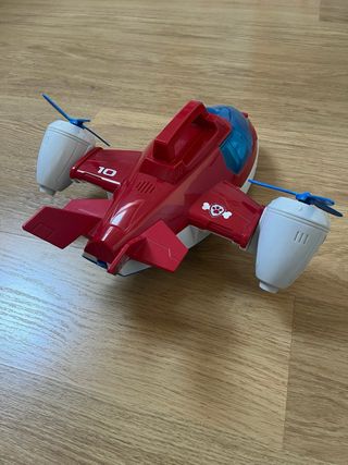 Avión de juguete de la Patrulla Canina. - Diseño en color rojo y blanco. - Cabina de color azul. - Alas con hélices azules.