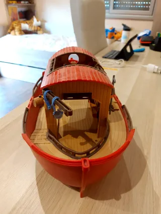 Barco de juguete Playmobil, modelo Arca de Noé. Ideal para coleccionistas o para jugar. - Barco de color rojo con detalles de madera. - Incluye accesorios como herramientas y elementos decorativos....se hacen lotes ...