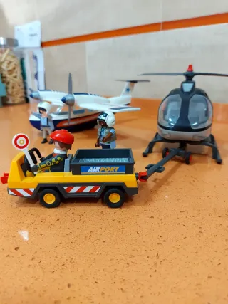 Set aviacion de Playmobil con un helicóptero y un avión. - Helicóptero negro con detalles rojos. - Avión blanco con hélices. - Incluye figuras de personal de aeropuerto....más figuras de Playmobil en mi perfil...se hacen lotes
