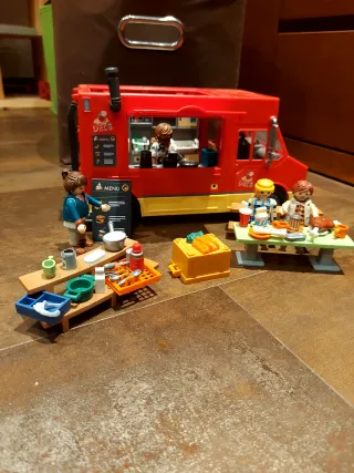 Camión de comida Playmobil para horas de diversión. - Incluye figuras y accesorios. - Camión rojo con detalles. - Ideal para coleccionistas y juego..se hacen lotes