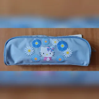 Estuche de Hello Kitty con un diseño encantador de flores en tonos azules y blancos. Es un accesorio práctico y bonito. - Diseño de Hello Kitty. - Decoración con flores. - Color azul.