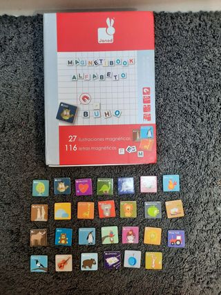 Maletín con abecedario magnético. Incluye 28 ilustraciones y 116 letras magnéticas. Juego ideal para el aprendizaje de la lecto-escritura. Precio nuevo:20€