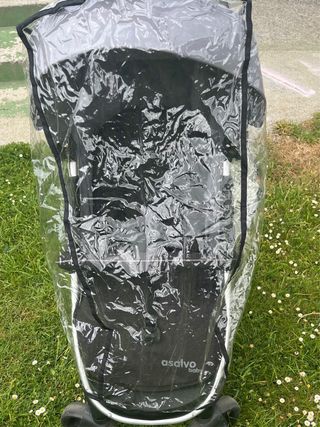 Preciosa silla de paseo Asalvo para bebé, en perfecto estado. Incluye plástico para lluvia. - Ligera y fácil de plegar. - Tapicería gris oscura. - Ruedas resistentes.
