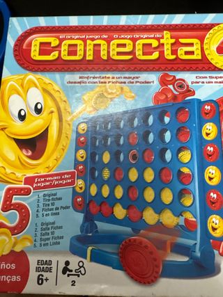 Juego de mesa Conecta 4, ideal para toda la familia. Incluye diferentes formas de jugar. - Tablero azul. - Fichas rojas y amarillas. - Para 2 jugadores. - Edad recomendada: 6+ años.