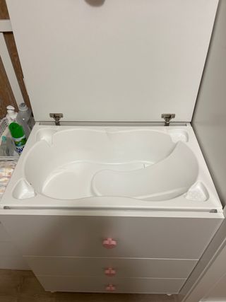 Cómoda blanca con tres cajones y tiradores en forma de corazón rosa. Ideal para la habitación del bebé. - Tiradores en forma de corazón. - Acabado blanco. - Muy útil y con mucha capacidad interior. En perfecto estado