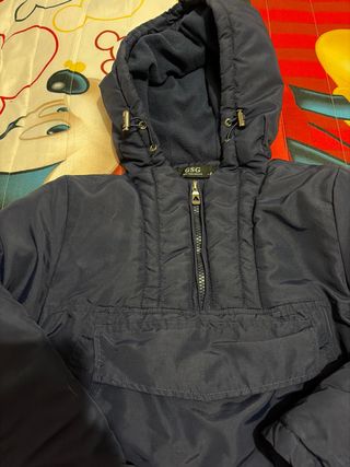 Abrigo infantil de color azul marino, ideal para los días fríos. Cuenta con un forro interior de polar para mayor calidez. - Capucha ajustable. - Bolsillo frontal. - Cierre de cremallera.