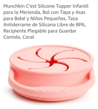 Práctico vaso de silicona para bebés y niños pequeños, ideal para la merienda. Su diseño plegable facilita el guardado y transporte. - Material: Silicona libre de BPA. - Color: Coral. - Incluye tapa y asas. - Diseño antiderrame.