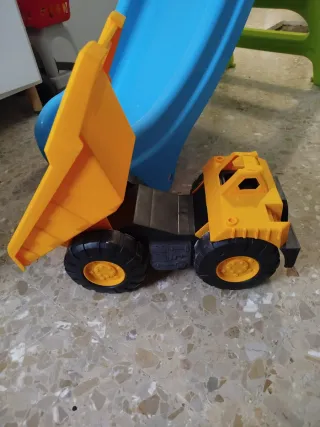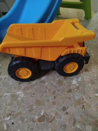 Camión de juguete de color amarillo brillante, perfecto para horas de diversión. - Diseño robusto y llamativo. - Ruedas grandes y resistentes.
